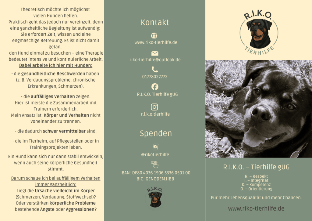 Hier R.I.K.O. Tierhilfe steht hier als PDF-Datei zum Herunterladen bereit.Du kannst ihn gerne digital weiterleiten oder verschicken, um das Projekt bekannt zu machen und weitere Unterstützer zu erreichen.